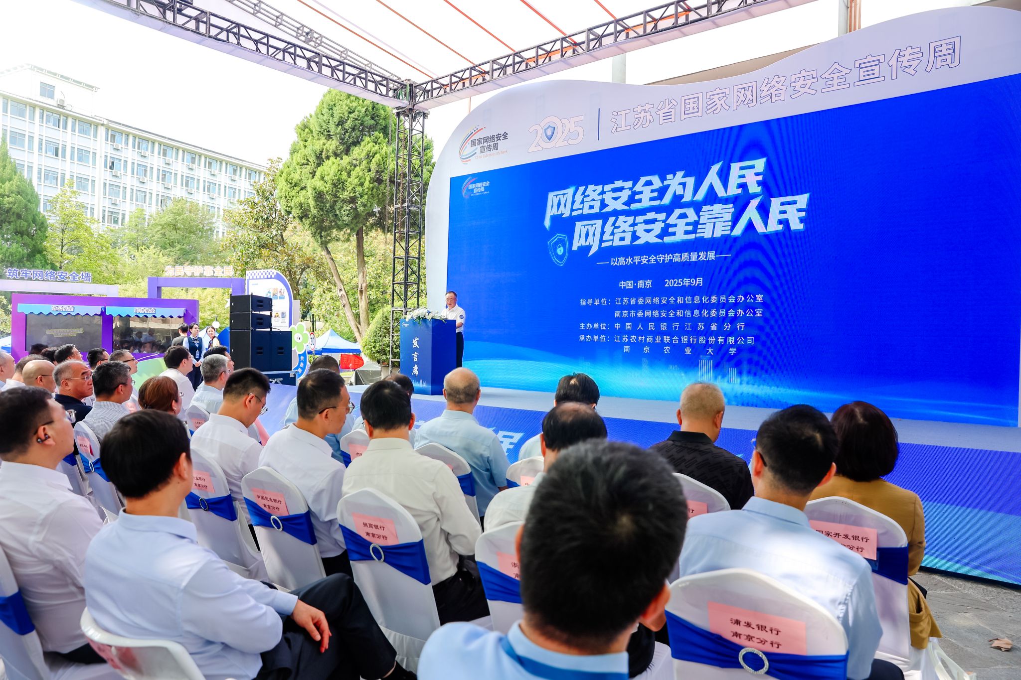 活动由江苏省委、南京市委网信办指导,中国人民银行江苏省分行主办,南京农业大学与江苏农商联合银行联合承办,聚焦“以高水平安全守护高质量发展”主题,通过政校企协同创新模式打造沉浸式金融安全教育课堂,为全省高校师生及公众筑牢网络安全屏障。